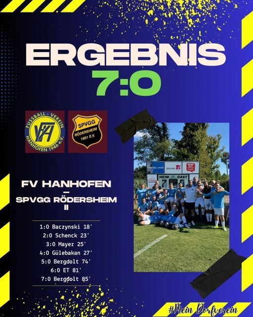 🔵🟡 + #meindorfverein HEIMSIEG + 🟡🔵 Am Sonntag traf unsere Mannschaft auf die Zweitvertretung der SpVgg Rödersheim @spvggroedersheim1951 . In einem recht einseitigen und immer fairen Spiel gewannen wir deutlich mit 7:0🤩 Somit stehen wir bei 4 Spielen, 4 Siege. Jetzt heißt es für uns, die Form weiter bestätigen und weiter an den Feinheiten arbeiten. Die Tore für unsere Farben erzielten Nobby, Manu, Neuzugang Dennis (Kaaaschde), Loris, 2x Dome und Eigentor. Unser nächstes Spiel steigt am Sonntag in Limburgerhof.