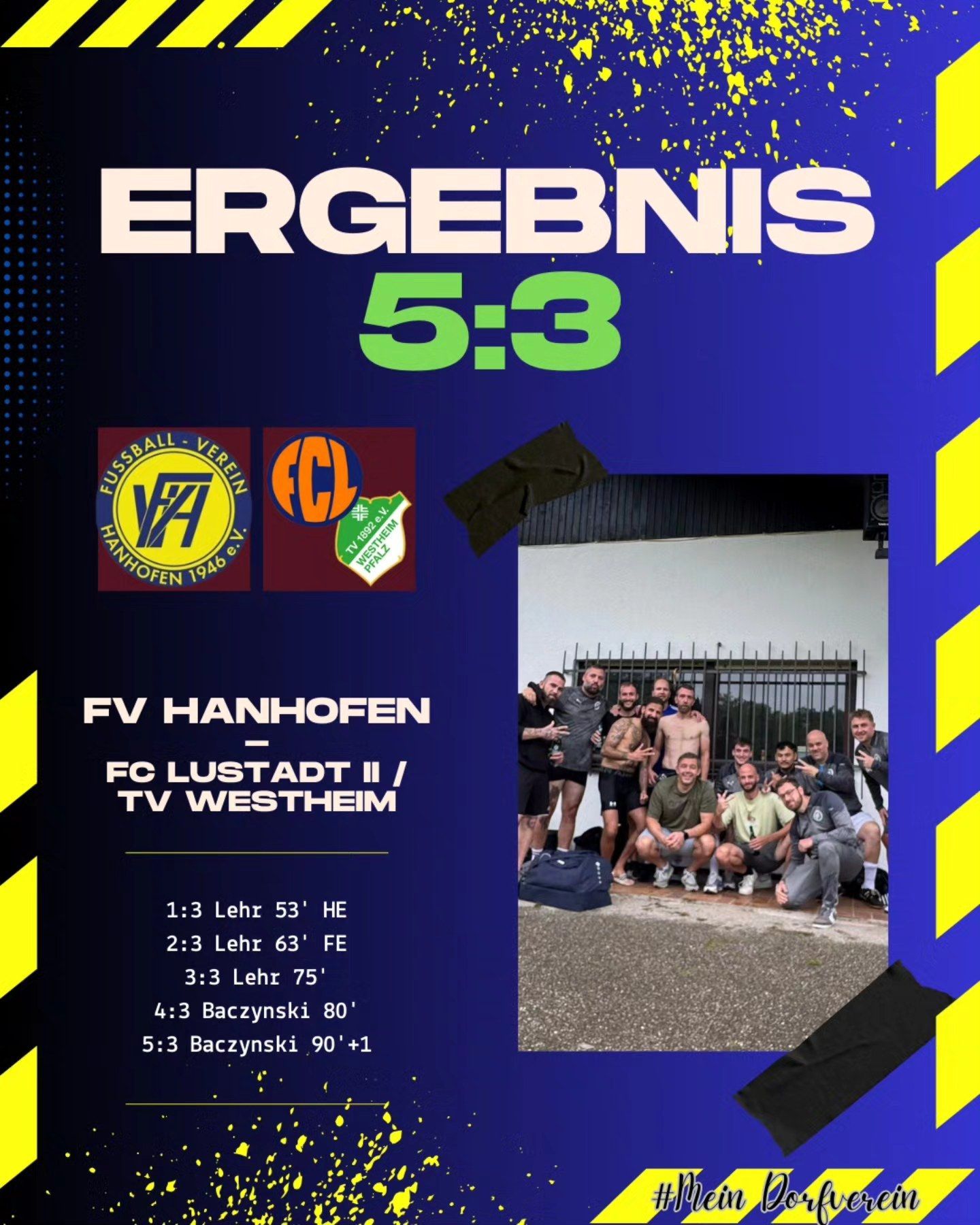Am Sonntag traf unsere Elf auswärts auf den @fv1921hassloch. In einem zähem Spiel hatten wir mehr Torchancen, während die Heimelf den Ball aus 38cm zu viert nicht über die Linie brachte. Am Ende belohnten wir uns durch 3 späte Tore zum verdienten Auswärtserfolg. Die Tore schossen Kurt @kurt__l, Domme @mettbrot0815 und Jens @jensd87 Am kommenden Sonntag dürfen wir wieder zu einem Heimspiel begrüßen. Zu Gast ist der @fclustadt II / @tv1892westheim. #meindorfverein #fvhanhofen #auswärtssieg Weniger anzeigen